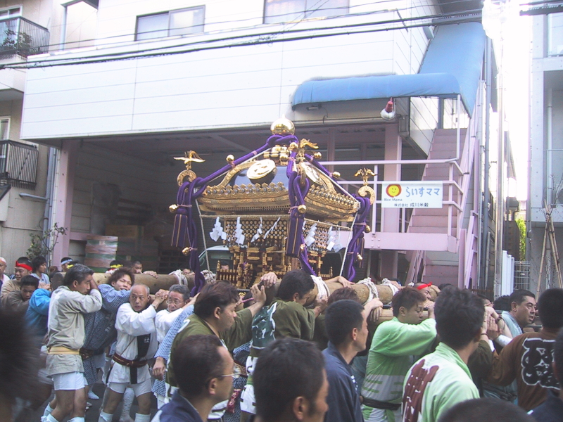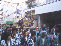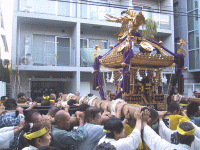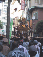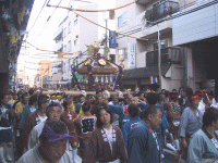 | 貝塚通りを巡行中の「孔雀」神輿 | |